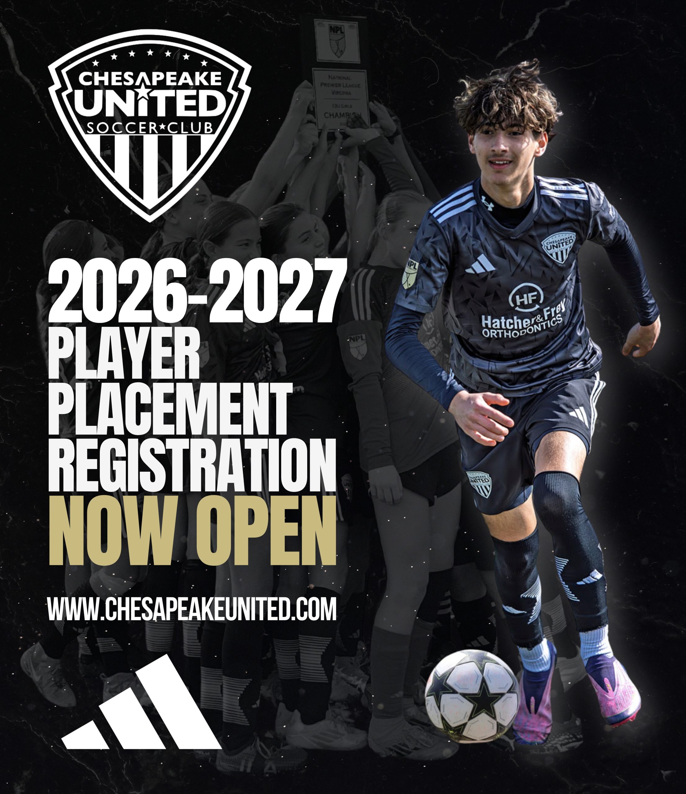 If you are unable to attend player placements or have missed the placement dates, please contact our staff at Info@ChesapeakeUnited.com to schedule an individual evaluation with a Competitive or Advanced team.